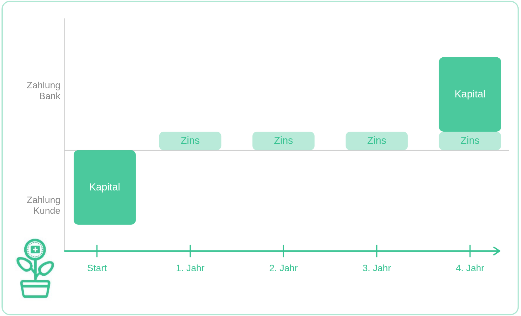 Typical of this combination are forms of investment where the capital is tied up for a fixed term – in return for a higher interest rate than on a traditional bank account, which can at least enable real value retention.
