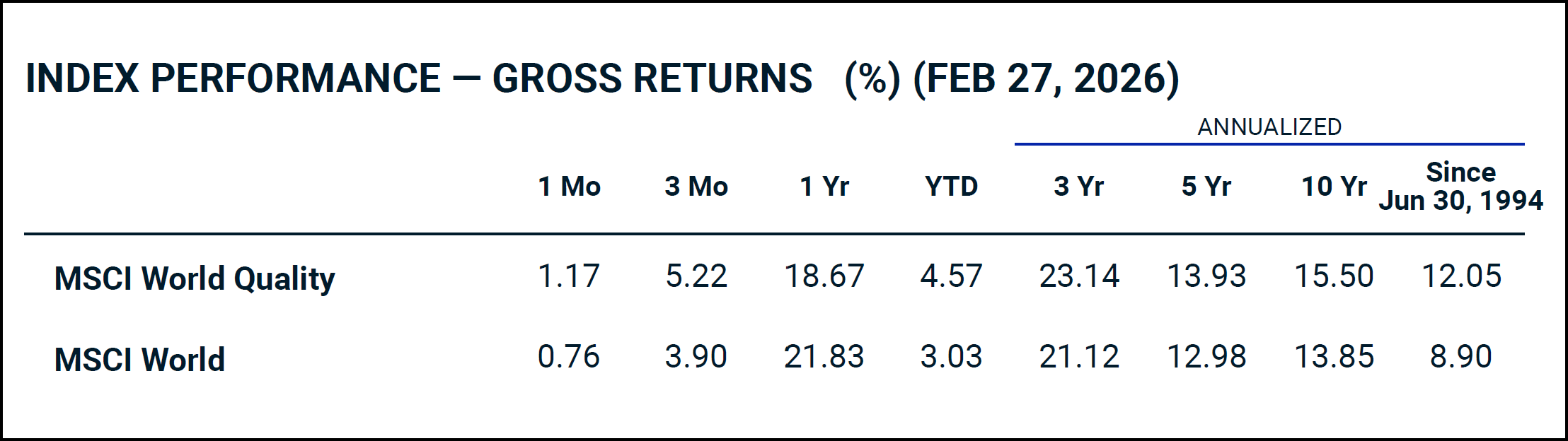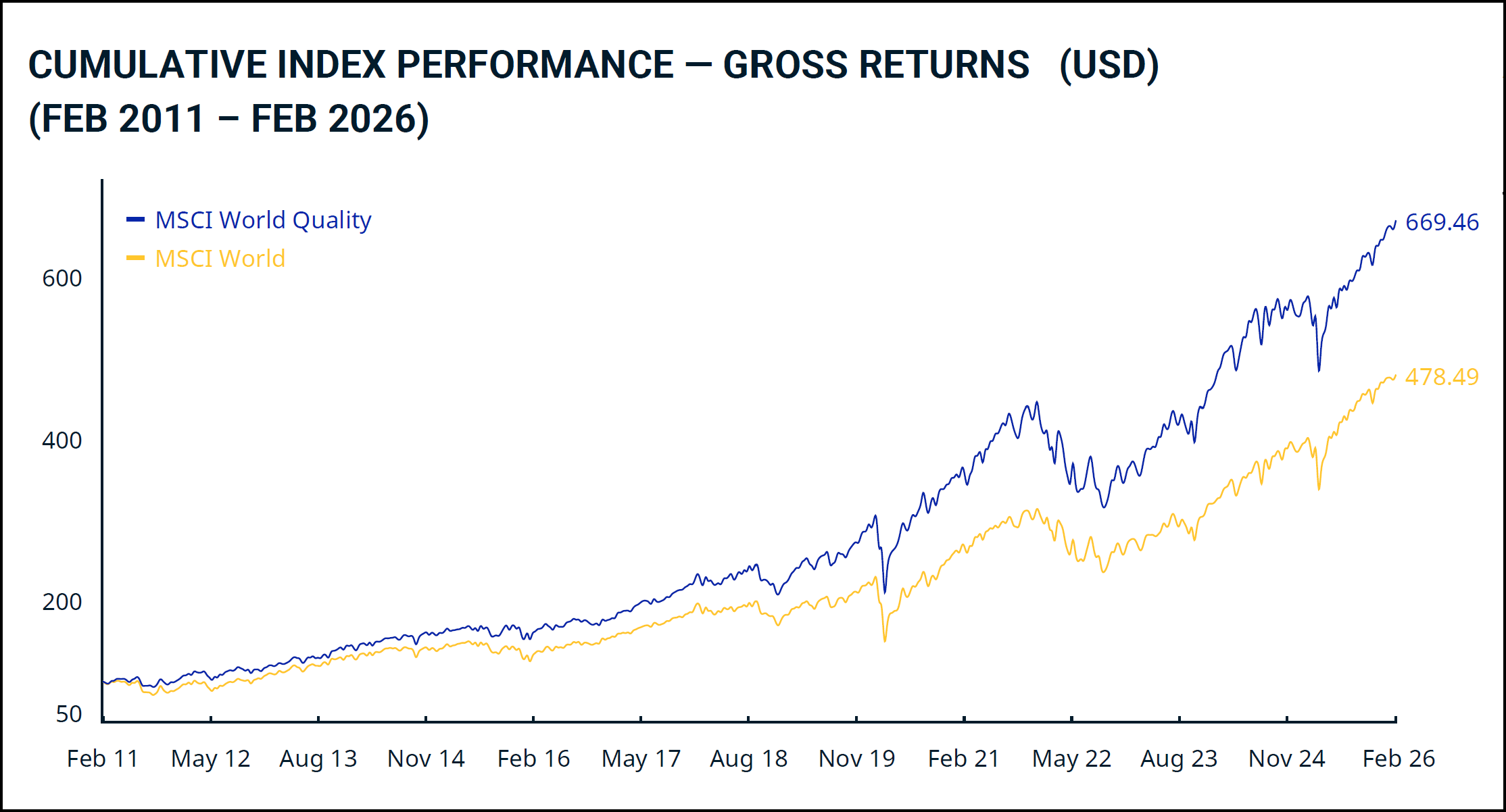 - Quality impresses with a stable 3.4% over 26 years – a finding that is impressively confirmed by our MSCI data: Since June 1994, the MSCI World Quality has beaten the overall market by a strong 3.15 percentage points annually.