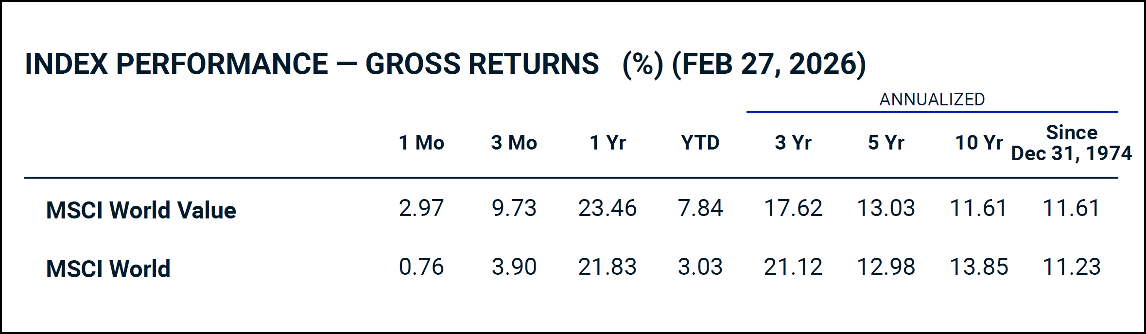 The largest position in MSCI World Value as at February 27, 2026 is – quite surprisingly – the Google share Alphabet. Despite its growth character, the tech giant is considered a value stock due to its comparatively low price/earnings ratio (P/E ratio) compared to the rest of the industry.