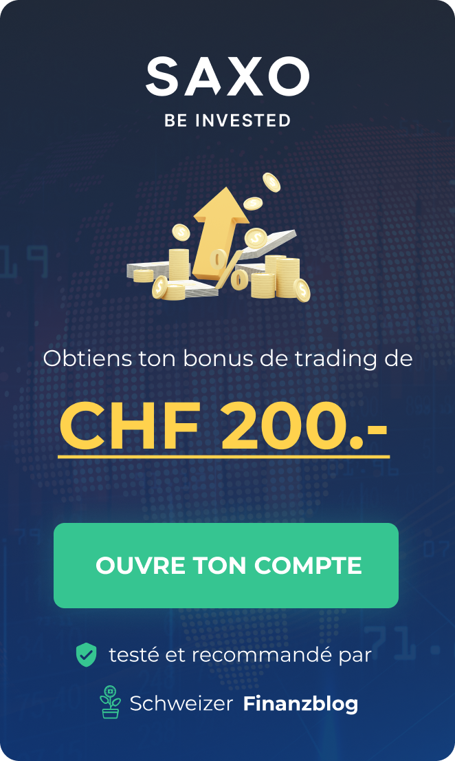 En cliquant sur l’annonce ci-dessous, vous pouvez ouvrir un compte d’investissement gratuit auprès de Saxo Bank, y compris 200 CHF de frais de trading offerts !