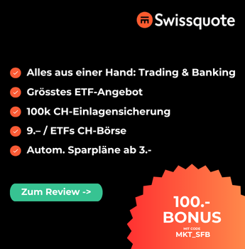 Der heimische Pionier-Broker Swissquote bietet als Schweizer Marktführer ein attraktives Gesamtpaket und punktet insbesondere mit dem grössten ETF-Angebot für Schweizer Anleger:innen.